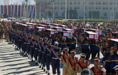 شيع اليوم في موكب جنائزي حزين بالعاصمة صنعاء شهداء الواجب من أبطال القوات المسلحة والأمن الذين استشهدوا أثناء تصديهم للعمل الإجرامي الغادر الذي استهدف قيادة المنطقة العسكرية الأربعاء