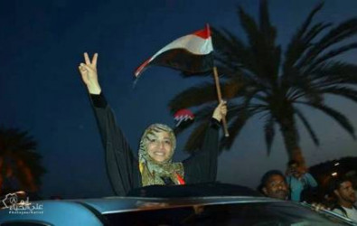 أثارت صورة للسيدة توكل كرمان الحاصلة على جائزة نوبل للسلام أثناء مشاركتها في إحياء الذكرى الثالثة للثورة 11 فبراير في مدينة الحديدة عاصمة إقليم تهامة .