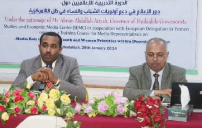 ينفذ مركز الدراسات والاعلام الاقتصادي دورة تدريبية للاعلاميين اليمنيين بمحافظة الحديدة حول " دعم إحتياجات وأولويات الشباب والنساء في ظل اللامركزية بالتعاون مع بعثة الاتحاد الاوروبي في