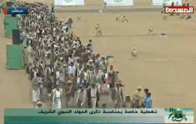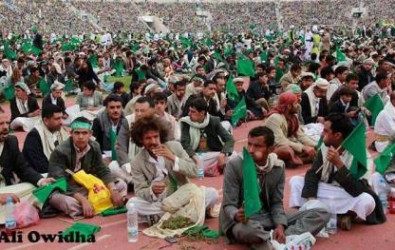 تداول نشطاء على فيسبوك في اليمن والوطن العربي صورة تعد الأغرب في تاريخ الرياضة اليمنية ، حيث أظهرت الصورة أشخاص من جماعة أنصار الله يفترشون أستاذ ملعب الفقيد علي محسن المريسي بمدينة الثورة