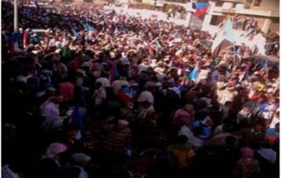 شيع الآلاف من أهالي المحافظات الجنوبية قبل دقائق من الان مراسم تشييع شهداء مجزرة سناح الذين قتلوا في قصف مدفعي نفذه الجيش اليمني في الـ 27 من ديسمبر الماضي . وسار المشاركون من وسط ملعب النصر