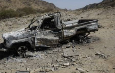 مصادر محلية اكدت أن طائرة يعتقد انها حربية أطلقت صاروخين على سيارة نوع شاص قديم
