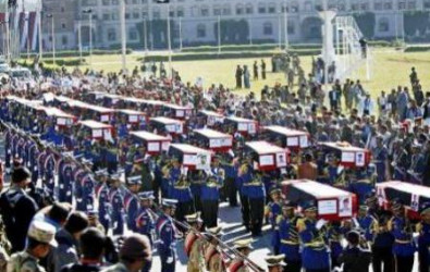 أقيمت اليوم الاثنين مراسم رسمية لتشييع ضحايا الهجوم الدامي الذي استهدف مستشفى مجمع وزارة الدفاع في صنعاء والذي قتل فيه 56 على الأقل بينهم أطباء ومرضى إضافة إلى جنود.