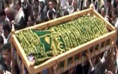عاد المواطن "صالح هران" إلى الحياة، أثناء تشييع جنازته، الثلاثاء، وسط مدينة ذمار .