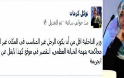 طالبت الناشطة اليمنية، الحائزة على جائزة نوبل للسلام،توكل كرمان بمحاكمة ، وزير الداخلية اليمني،عبد القادر قحطان بتهمة "الخيانة العظمى"، بسبب تقصيره وتهاونه في الإنفلات الأمني الذي تشهده