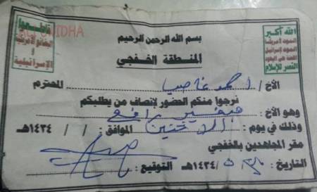 حصلت "الأهالي" على نسخة من الإرساليات الخاصة بالحوثيين، التي يتداولونها في الأقسام التابعة لهم في العاصمة صنعاء، ويسمون انفسهم بـ "المجاهدين". وتستغل جماعة الحوثي المسلحة ضعف الدولة في توسع انشطتها والعمل خارج نطاق القانون والسلطة. ويظهر في الصورة طلبا لأحد "مجاهدي" الحوثي المدعو احمد غاصب، لإنصافه من المدعو صغير رافع. والرسالة من مقر المجاهدين بالخفجي بحسب مايظهر في الرسالة. وتقع منطقة الخفجي في شارع خولان، بين الجوازات والحثيلي.