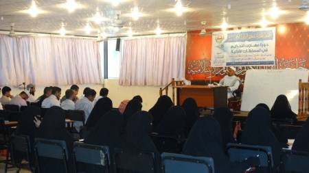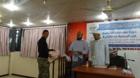 أقامت " الجمعية الخيرية لتعليم القرآن الكريم / فرع عدن عصر أمس الأحد بقاعة جامعة القرآن الكريم والعلوم الإسلامية بكريتر الدورة النوعية الأولى في (مهارات التحكيم في المسابقات القرآنية) كأول دورة تقام في اليمن ... والتي نفذها فضيلة الشيخ / بسام عبد الملك عبد الحميد عضو مشيخة الإقراء في اليمن الوجه القرآني الشهير ، وتوافد عليها عشرات المشاركين ممن يديرون التحكيم في مسابقات قرآنية شهيرة تشهدها محافظة عدن .. سنوياً ، كأشخاص وجهات .