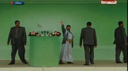 القى عبد الملك الحوثي خطاب وسط حشد جماهيري غفير بصعده ومن خلف زجاج ضد الرصاص بمناسبه ذكري المولد النبوي الشريف قال فيه انه يمد يده للجميع وان ما قاموبه في الأيام الماضية كان دفاعاً عن النفس.