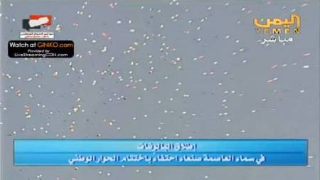أطلقت آلاف البالونات في سماء العاصمة صنعاء احتفاء باختتام مؤتمر الحوار الوطني الشامل قبل قليل من موعد انطلاق حفل الاختتام الرسمي للمؤتمر .