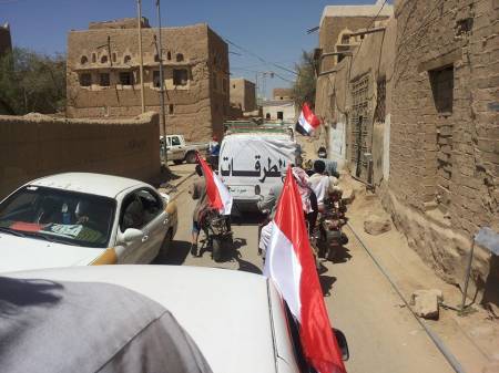 تزينها أعلام الجمهورية ..طلائع مسيرة السلام تصل صعدة (صورة)