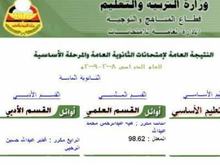 حرمان من دخول الامتحان لمن لم يستكمل بياناته الانتهاء من الاصدار الآلي لأرقام الجلوس الخاصة بطلاب وطالبات الشهادة الثانوية العامة باليمن