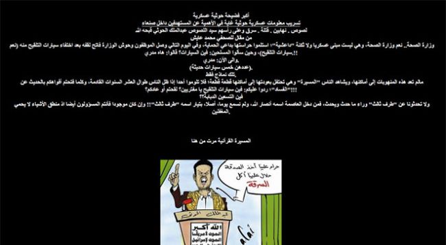 وتمكن مجهولون في أواخر سبتمبر/أيلول الماضي من اختراق الموقع الرسمي للحوثيين (www.ansaruallah.com) ونشر صور تفضح عمليات النهب التي قام بها المسلحون الحوثيون لبيوت ومؤسسات تتبع خصومهم بعد اجتياحهم للعاصمة اليمنية صنعاء في الحادي والعشرين من سبتمبر الماضي.