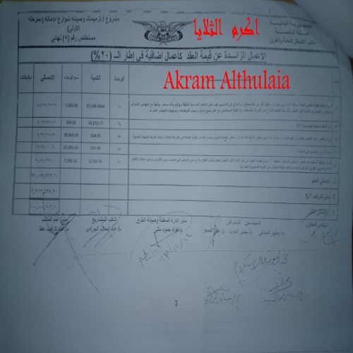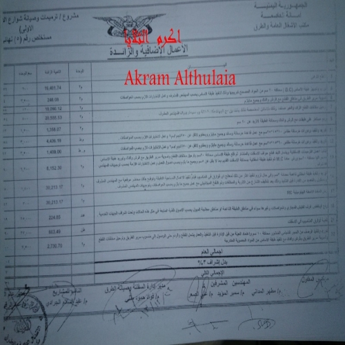** الفساد في مشروع ترميم وصيانة شوارع العاصمة تنفيذ المؤسسة العامة للطرق والجسور كالتالي:-