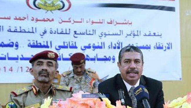 وتطرق بحاح الى المنعطفات والتحديات المختلفة التي مرت بها المؤسستين العسكرية والامنية خلال الأعوام الماضية وضرورة الاستفادة منها لتصحيح المسار .. مجددا التأكيد في هذا الصدد على ضرورة النأي بهاتين المؤسستين عن المناطقية والمذهبية والحزبية، والعمل على تكريس ثقافة الوطن في ادائها لواجباتها اليومية .