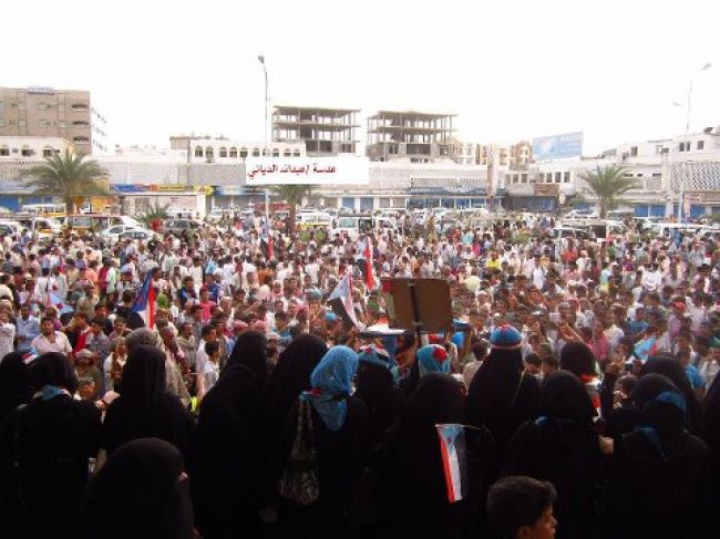 وعقب الصلاة خرجت مسيرة حاشدة طافت ساحة العروض ردد فيها المشاركون هتافات تطالب بسرعة فرض استقلال الجنوب.