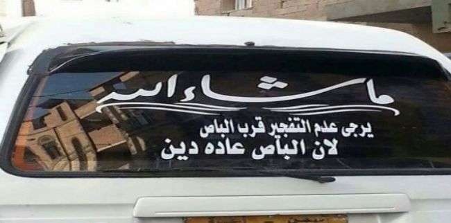 انتشرت صورة بشكل واسع على شبكات التواصل الاجتماعي لحافلة صغيرة أجرة كتب عليها عبارة في خلفيتها “يرجى عدم التفجير قرب الباص لأنه عاده دين”، وهي العبارة التي فيها ترفيه وسخرية من التفجيرات التي تشهدها عدن، وإشارة الى الحالة الاجتماعية السائدة في المدينة .