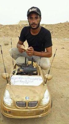 شاب يمني مقاوم يخترع سيارة إلكترونية كاشفة للإلغام بمأرب (صورة)