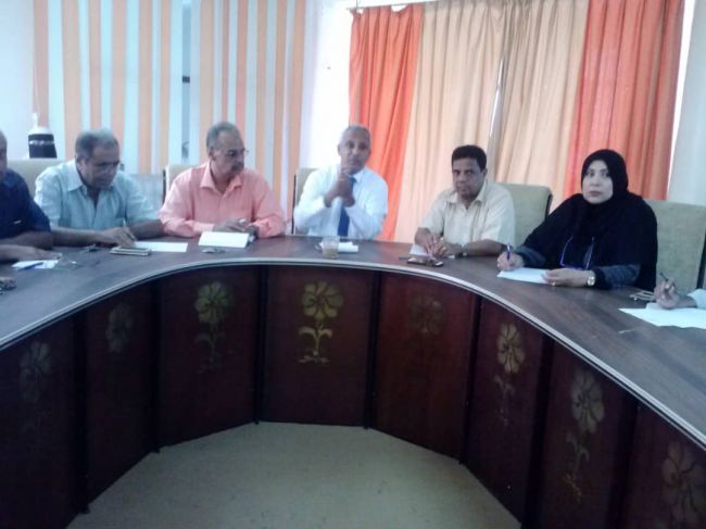 التقى مدير مكتب التربية والتعليم في محافظة عدن د .محمد الرقيبي رؤساء الشعب ومديري الادارات في مكتب التربية والتعليم ورؤساء الاقسام امس الثلاثاء لمناقشة جملة من القضايا المهمة التي تصب في زيادة فاعلية العمل وتعزيز مبدأ الانضباط الوظيفي والعمل بنظام البصمة.