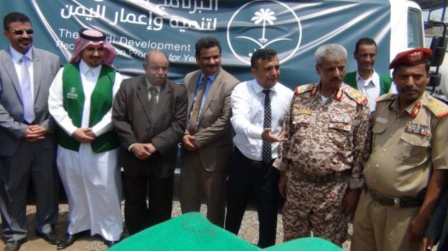 دشن البرنامج السعودي لتنمية واعمار اليمن، اليوم، في العاصمة عدن، مشروع توزيع صهاريج المياه.
