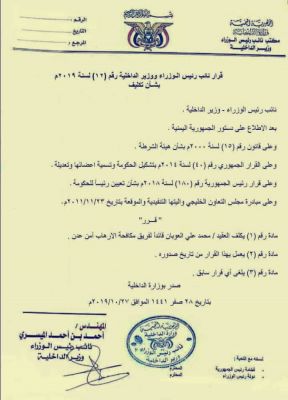 أصدر وزير الداخلية ، نائب رئيس الوزراء أحمد الميسري قراراً بإقالة يسران المقطري  من منصبه قائدا لمكافحة الإرهاب.
