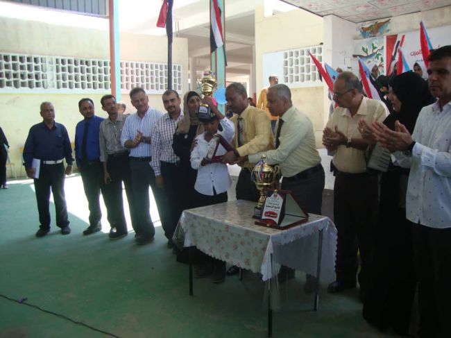 وفي الختام تم تكريم رؤساء اقسام الانشطة المدرسية في ادارات التربية والتعليم الثماني وكذا مديرة المدرسة المستضيفة للفعالية، والفائز في المركز الاول والوصيف. الجدير بالذكر انه ستقام يوم الاحد القادم احتفائية لتكريم المشاركين في المسابقة في مكتب التربية والتعليم - عدن.