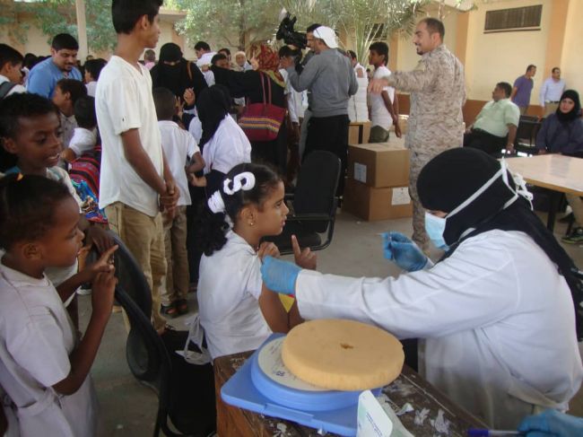 بدعم من التحالف وبحضور د . الرقيبي تدشين لقاح الوقاية من مرض الانفلونزا بمدارس عدن