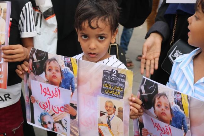 نظمت أسرة المخفي قسرا في السجون السرية زكريا قاسم ورابطة الأمهات عصر اليوم الأحد وقفة احتجاجية في الشارع العام بمديرية المعلا غرب العاصمة المؤقتة عدن وذلك للمطالبة بالكشف عن مصيره المجهول منذ عامين.