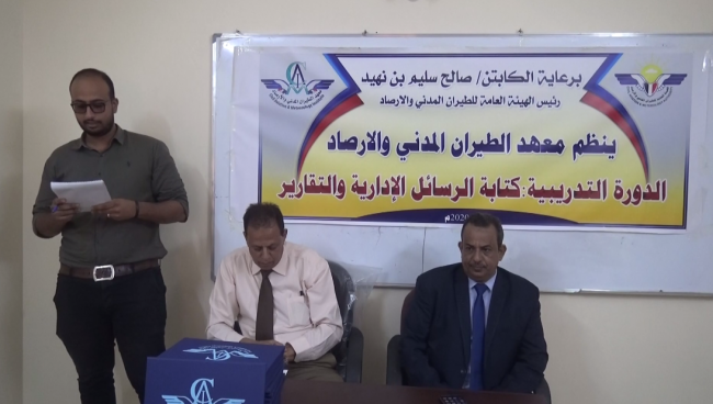 وخلال حفل اختتام الدورة التي استهدفت ٢٠ مشارك ومشاركة واستمرت لمدة خمسة أيام اكد مدير عام معهد الطيران المدني والارصاد الدكتور محمد عبد الله النخعي ان هذه الدورة تهدف الى اكساب المشاركين مزيدا من الخبرات في مجال كتابة التقارير والرسائل الإدارية.