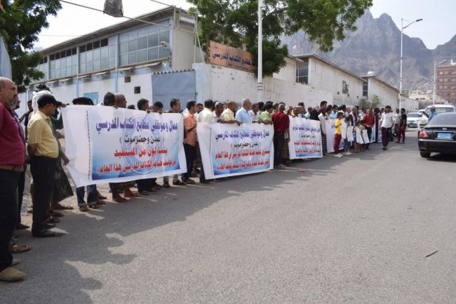 موظفي مطابع الكتاب المدرسي ينفذون وقفة احتجاجية بالعاصمة عدن