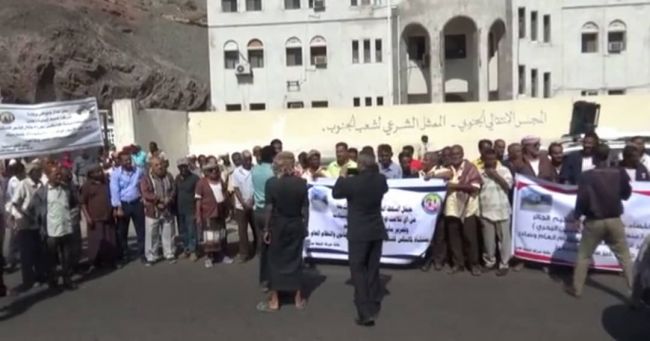 ورفع المحتجون خلال وقفتهم الأحتجاجية لافتات وشعارات للمطالبة بتطبيق القانون وسيادته وعدم تمرير ما يسمى ب (حكم التحكيم ) واعاده منشأة كالتكس للتموين البحري الى اصلها الطبيعي شركة النفط اليمنية .